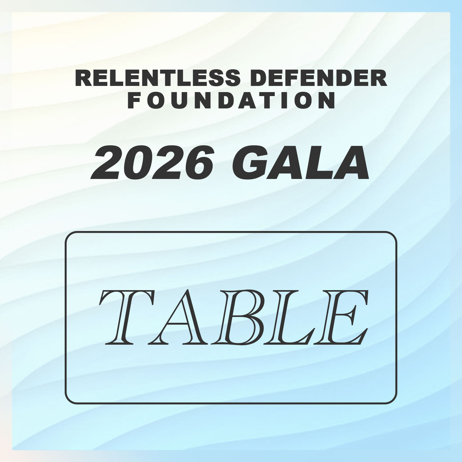 Your purchase of a Table at the 2026 Relentless Defender Foundation Gala will secure seating and dinner for a total of ten guests.  Please adjust quantity appropriately if multiple tables are desired. 10 guests will be seated per table.